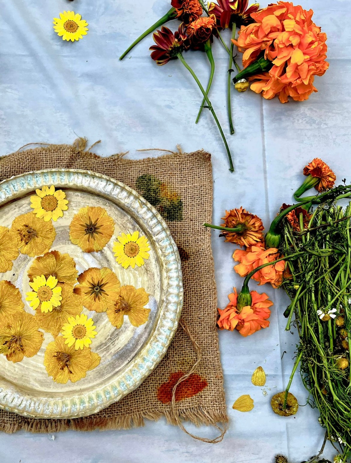 * 12 flores prensadas para hacer prints, diferentes flores, hierbas y plantas (cultivadas en casa) para experimenta. Con esto puedes crear eco prints o bundle dyes.
