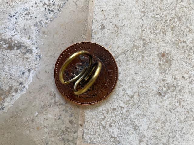Moneda de cincuenta centavos del año 1959 encontrada en un mercado de antiguedades en México hecha de cobre.